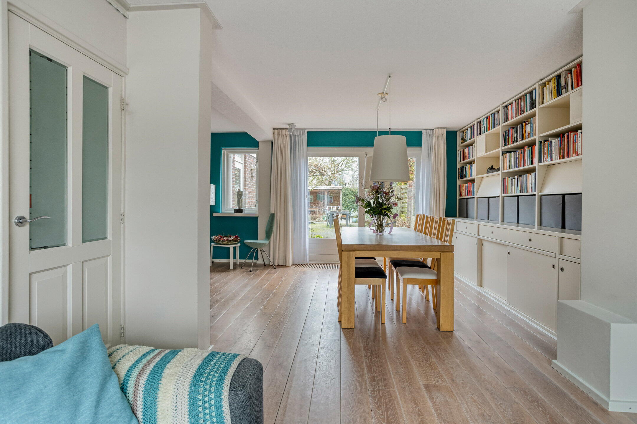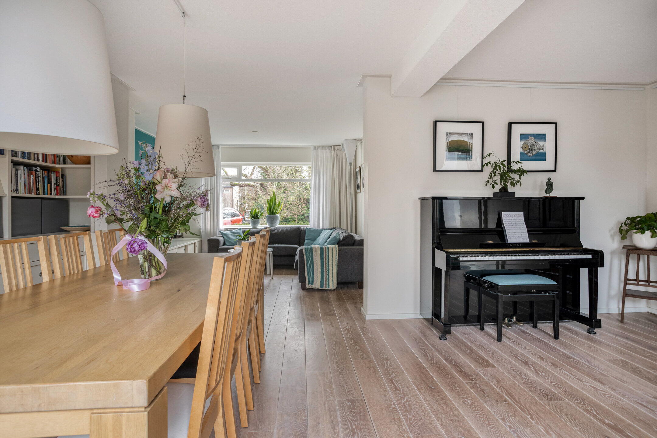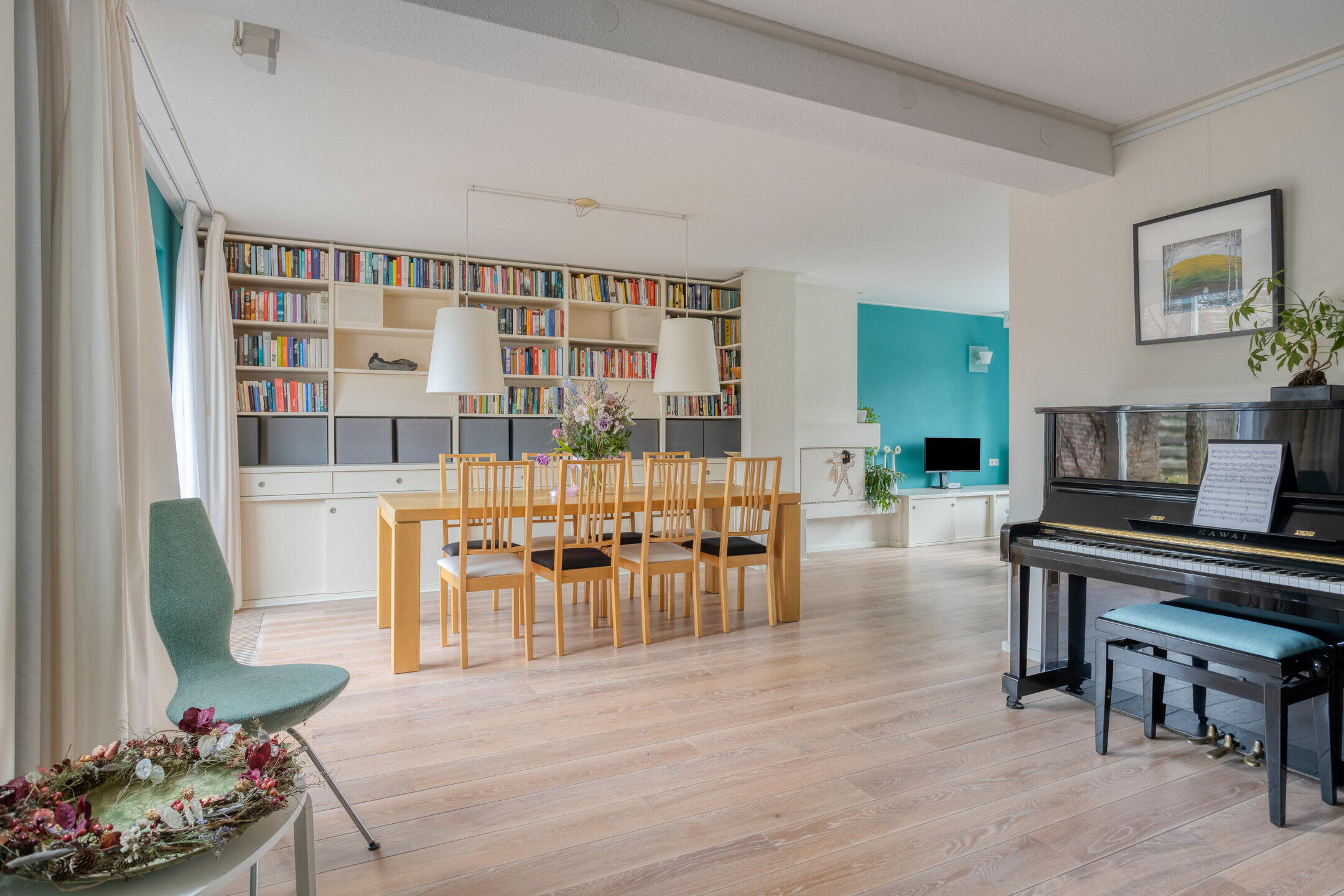 De woonkamer is heerlijk ruim en praktisch ingedeeld. Aan de voorzijde bevindt zich het zitgedeelte met plek voor een comfortabele hoekbank. Aan de achterzijde is er volop ruimte voor een grote eettafel, momenteel staat hier met gemak een tafel voor 10 personen. Daarnaast is er extra kastruimte én een gezellige hoek waar nu onder andere een piano staat, maar ook perfect kan worden ingericht als leeshoek of speelhoek. Extra comfortabel: de woonkamer is voorzien van vloerverwarming, wat zorgt voor aangename warmte en een strakke afwerking zonder radiatoren in het zicht.