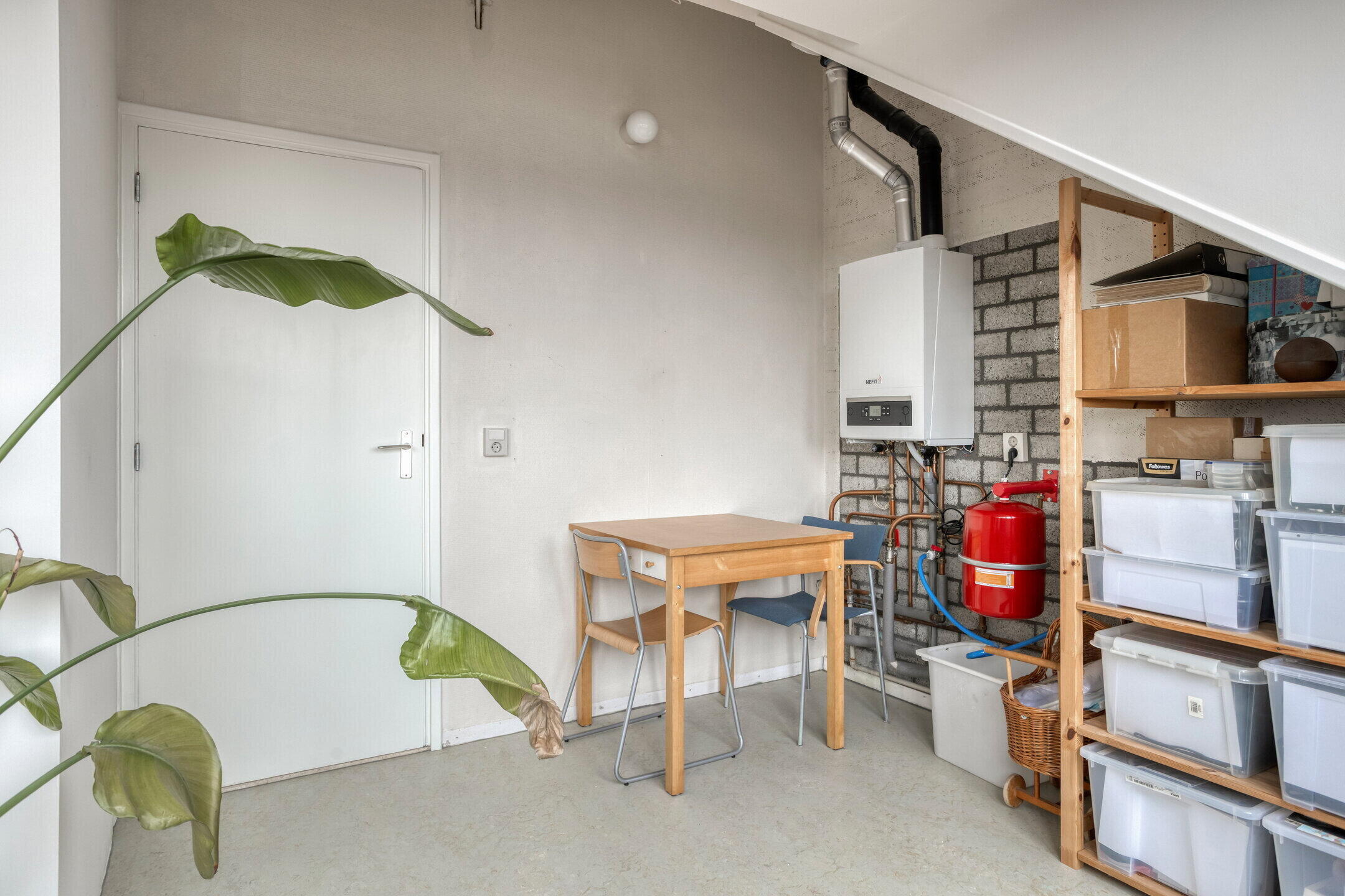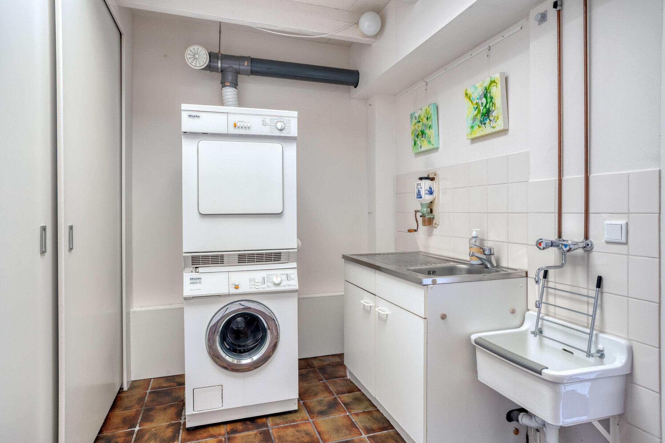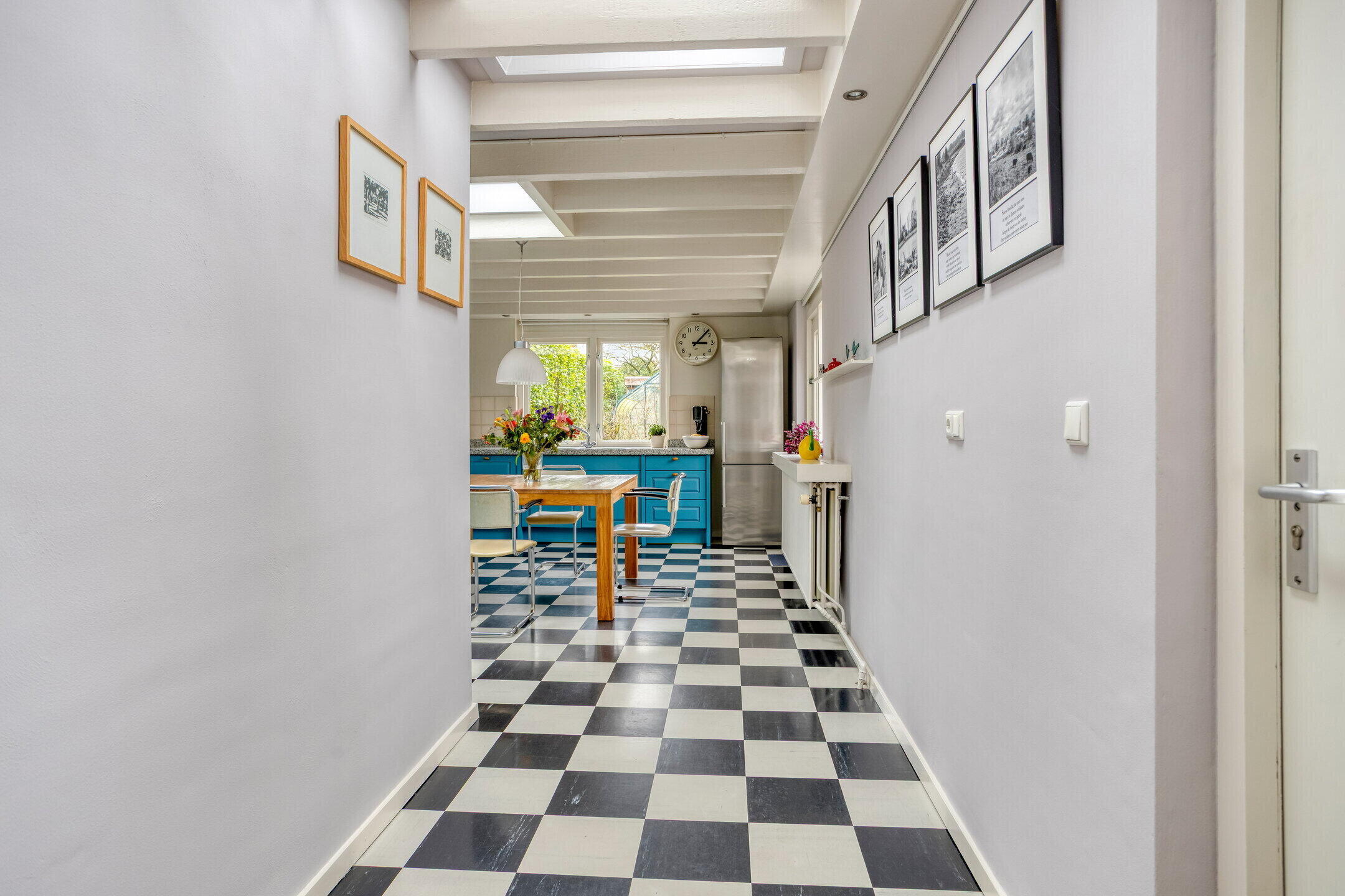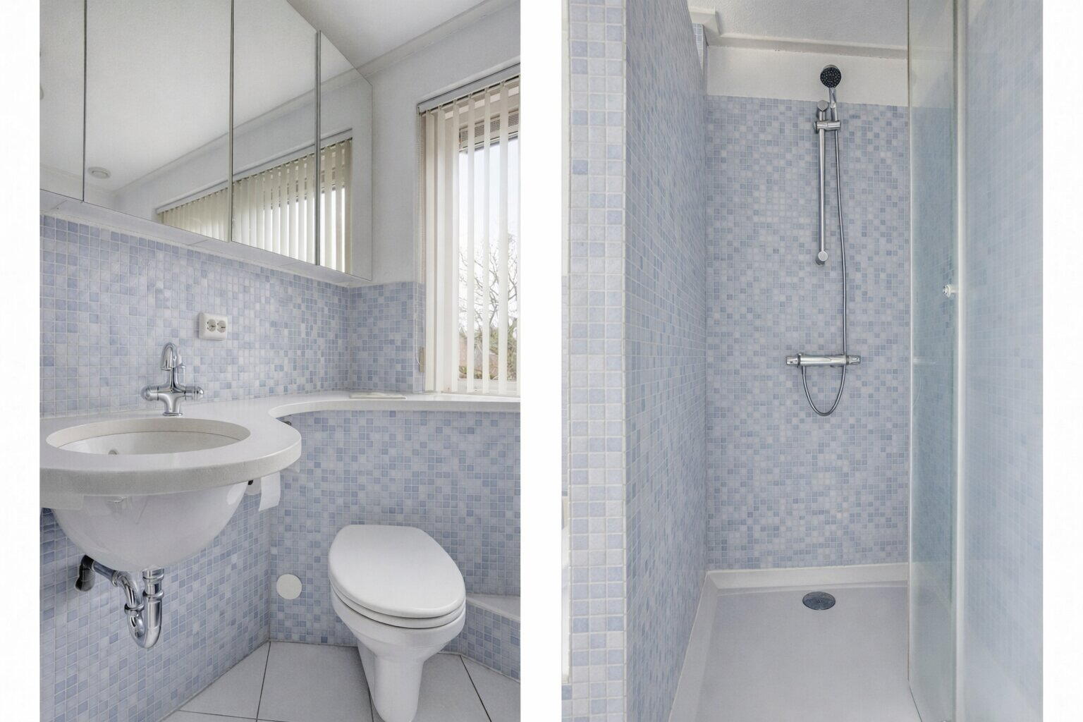 De gesloten keuken bevindt zich aan de achterzijde van de woning en is opgesteld in een hoekopstelling. De opvallende felblauwe kleur geeft karakter. Liever een neutralere uitstraling? Dan is dit eenvoudig aan te passen. De kasten in de keuken zijn van hout en zijn gemakkelijk over te schilderen, zo krijg je een compleet andere look. De keuken is voorzien van keramischekookplaat, afzuigkap en losse koelkast. Dankzij de dakramen geniet je hier van prachtige lichtinval. Er is bovendien ruimte voor een eettafel. Aangrenzend vind je de praktische bijkeuken met vaste inbouwkast, aansluitingen voor wasmachine en droger én een extra keukenblokje met wastafel. Vanuit hier heb je toegang tot de garage. Ook de garagedeur is in 2024 vernieuwd, een fijne onderhoudsplus. Daarnaast zijn de garage en bijkeuken beide voorzien dan dakramen waardoor deze veel natuurlijk licht bevatten.