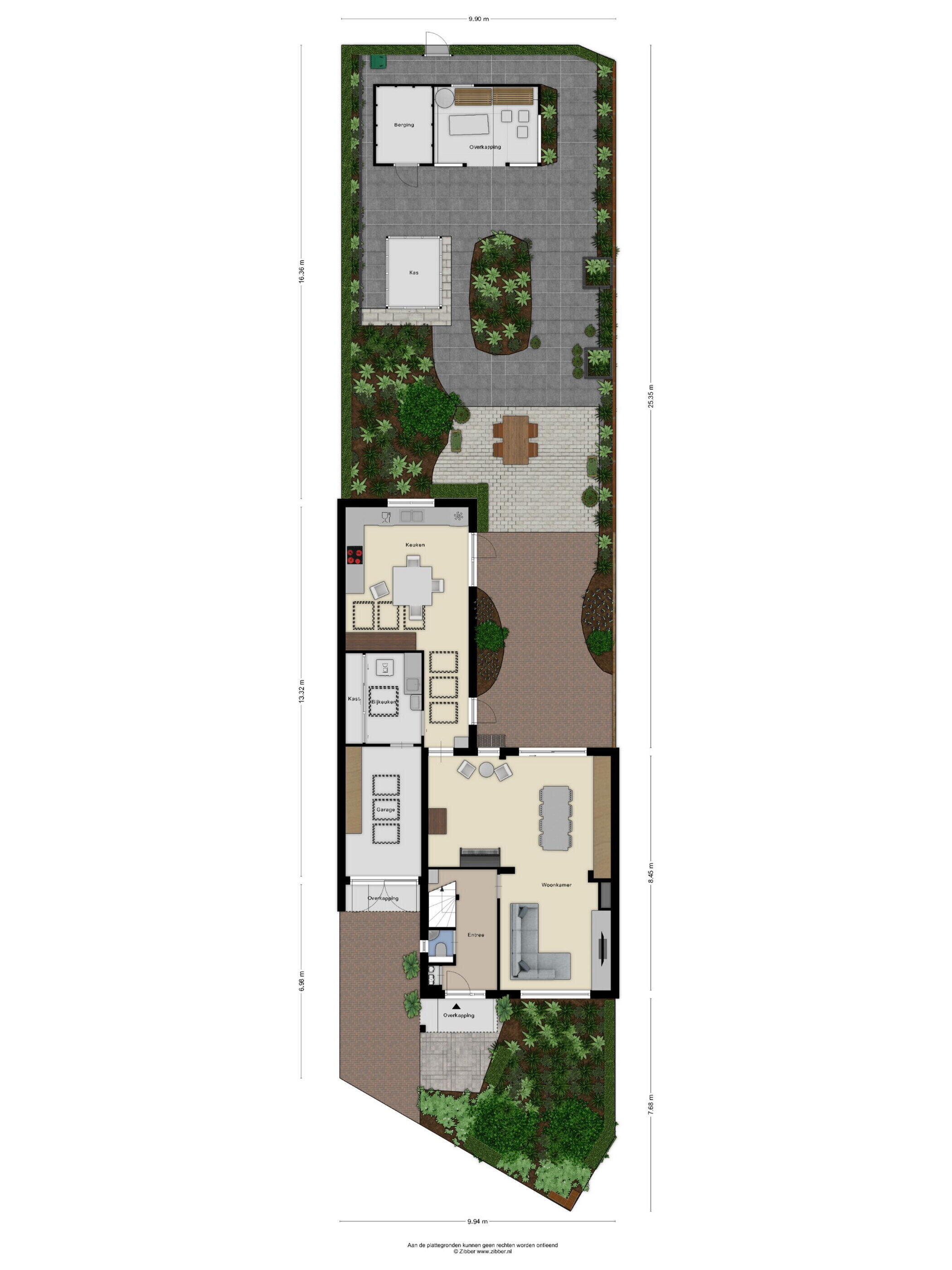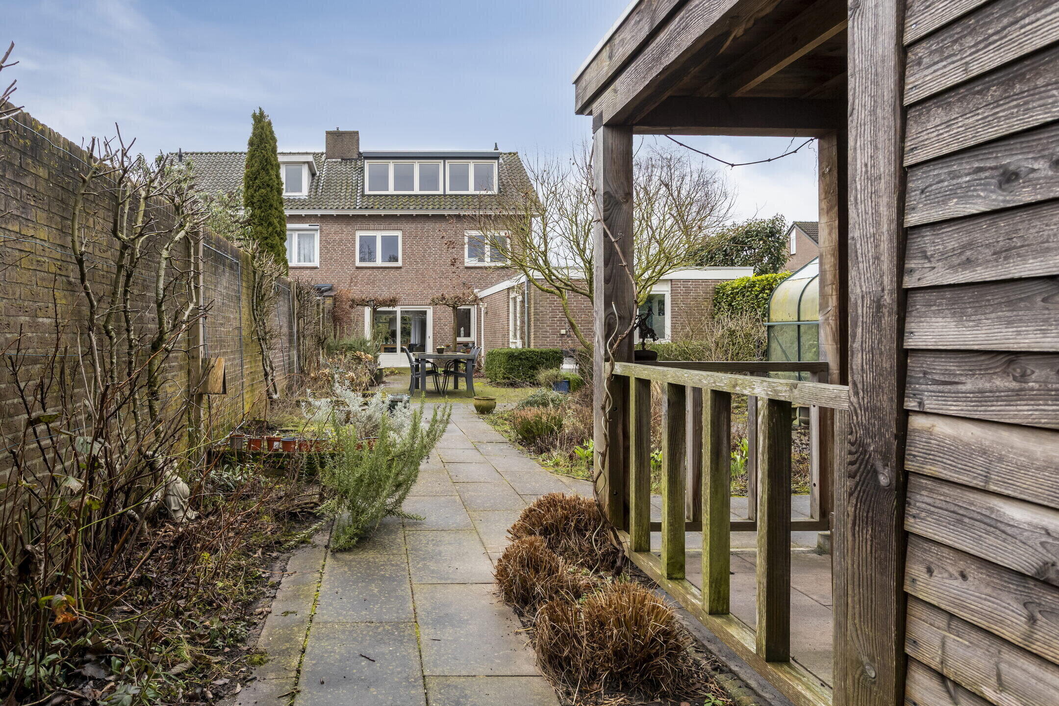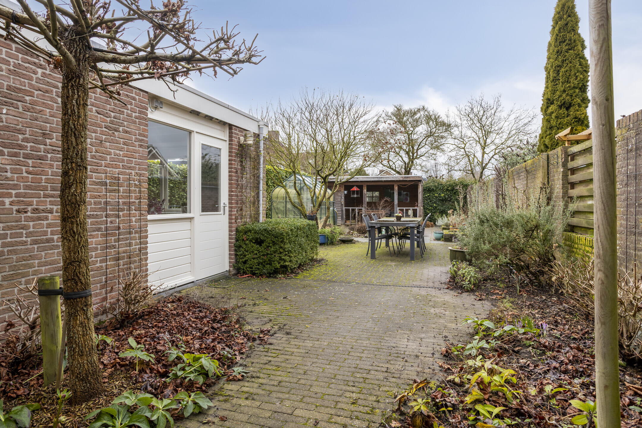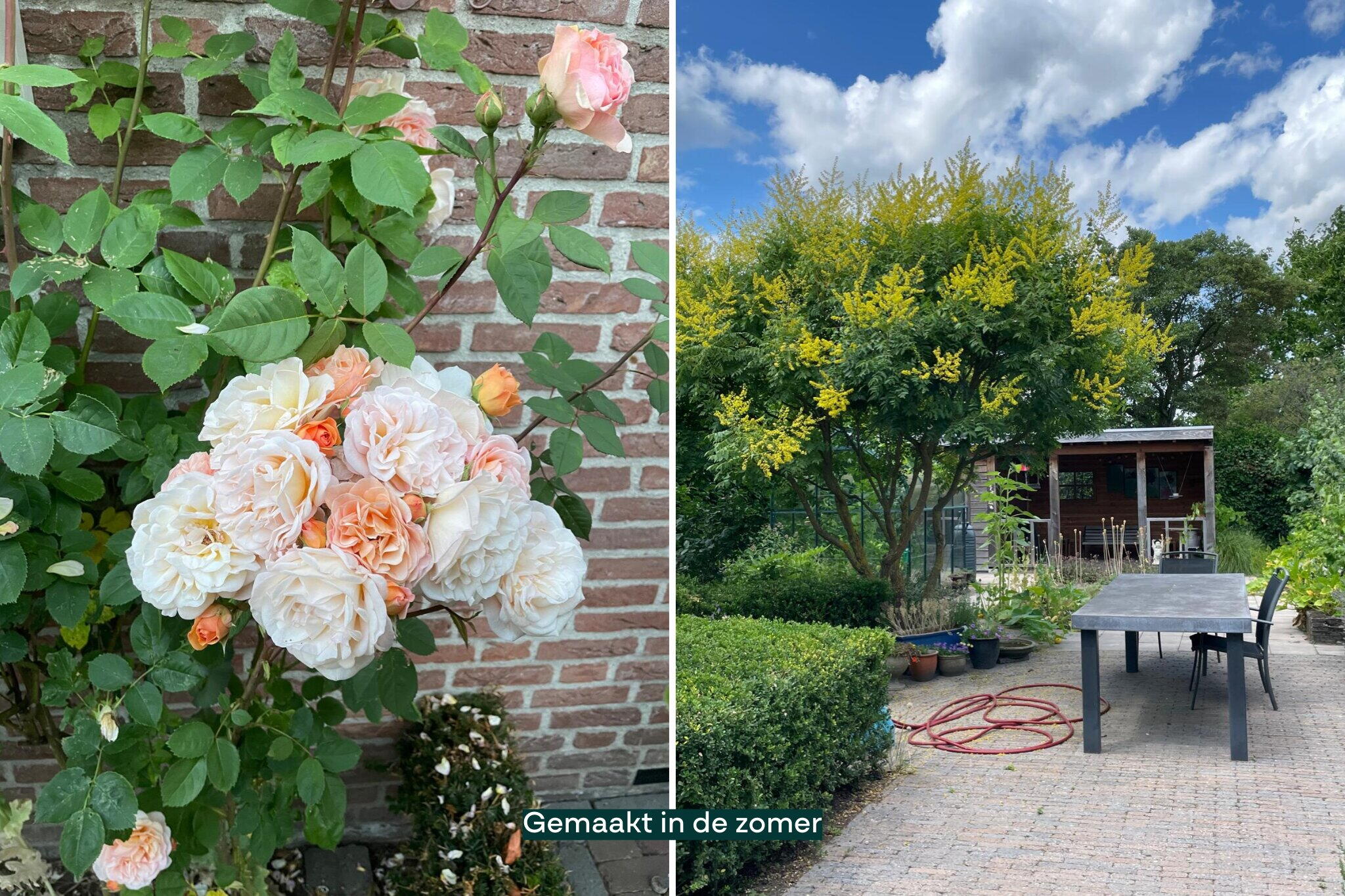 - Achterin bevindt zich een houten berging met overkapping, een perfecte plek voor een loungeset waar je lange zomeravonden doorbrengt. De tuin biedt volop ruimte en privacy.