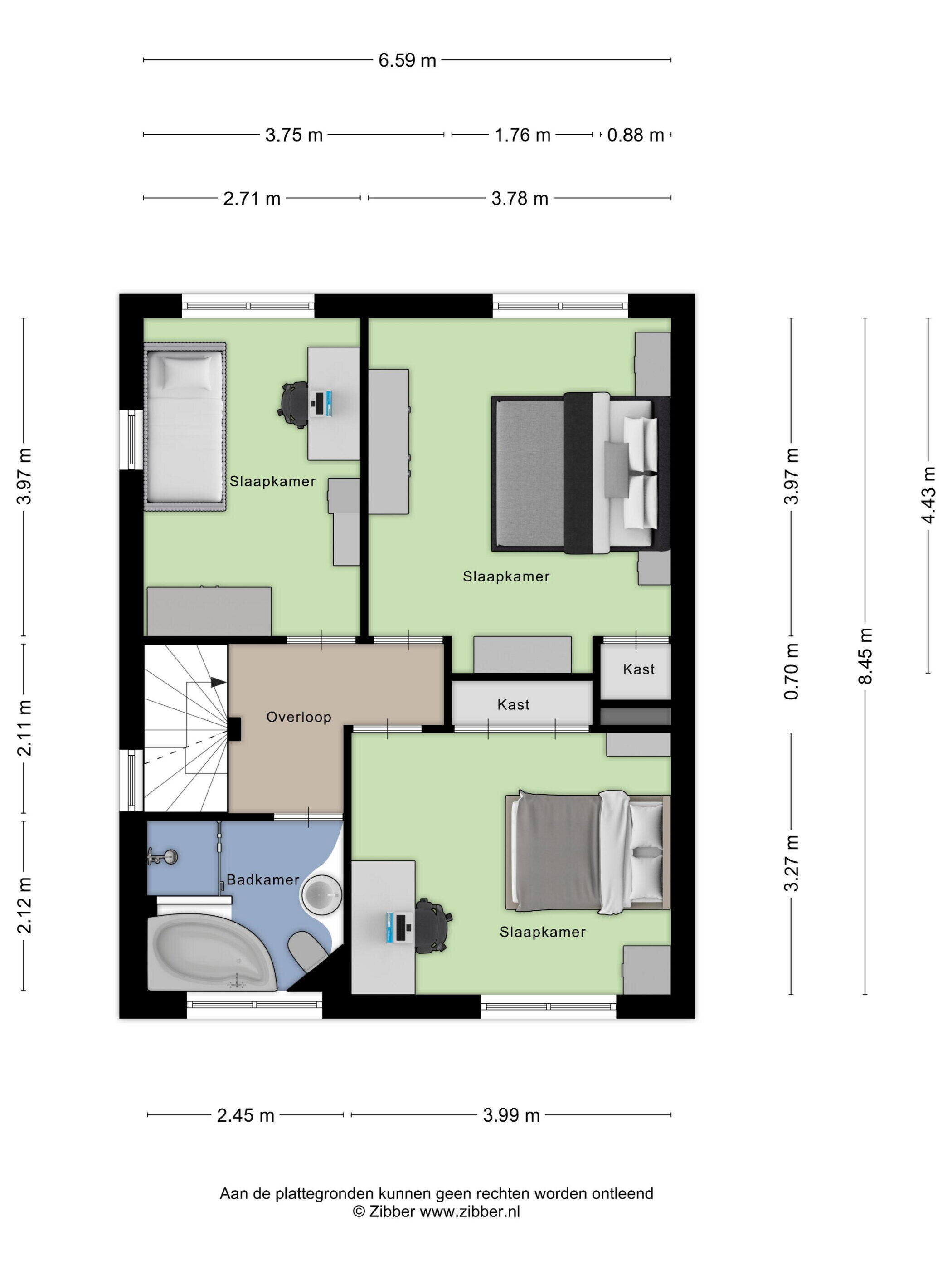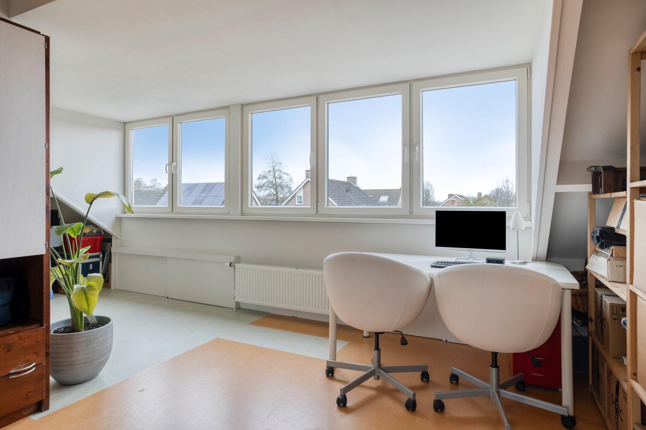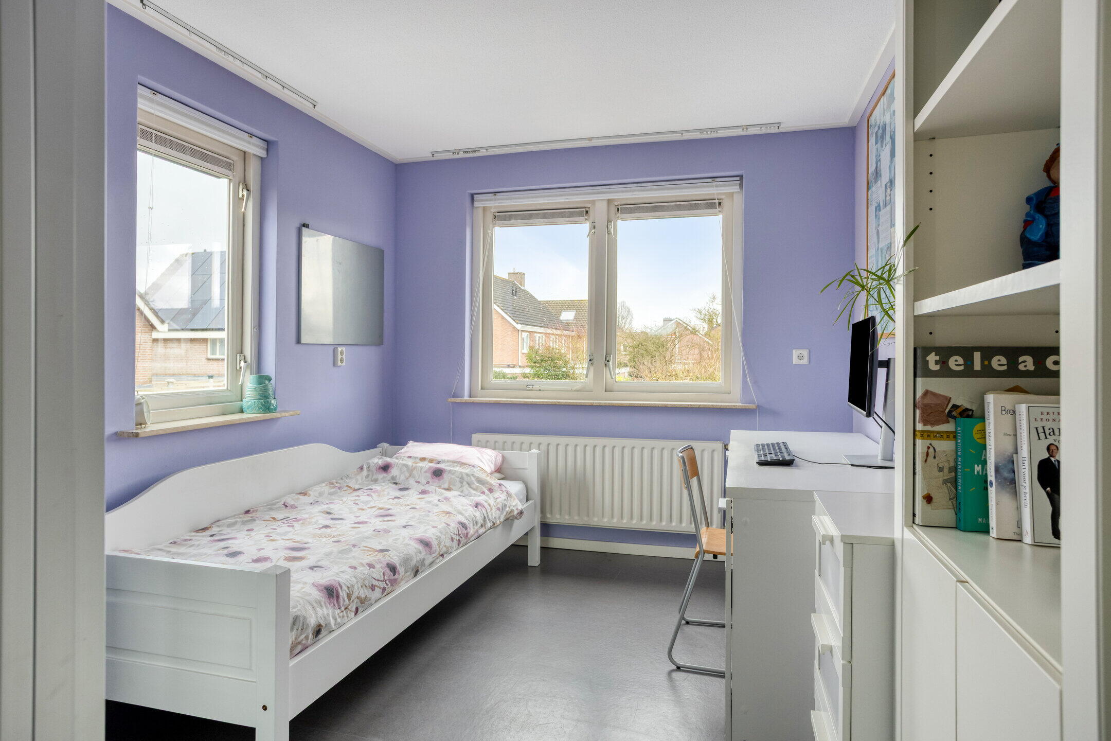 Op de eerste verdieping kom je op de overloop met toegang tot drie slaapkamers en de badkamer. De master bedroom ligt aan de achterzijde en biedt ruimte voor een tweepersoonsbed en kledingkast. De ruime slaapkamer aan de voorzijde is eveneens geschikt voor een tweepersoonsbed en bijvoorbeeld een bureau. De derde slaapkamer is compacter, ideaal als kinderkamer, werkkamer of inloopkast. De badkamer is compleet uitgevoerd met wastafel, toilet, bad en douche, alles wat je nodig hebt om de dag fris te beginnen of ontspannen af te sluiten. Ook hier geniet je van vloerverwarming, wat zorgt voor extra comfort. Via een vaste trap bereik je de tweede verdieping. Hier kom je op een overloop met toegang tot een berging en een zeer ruime vierde slaapkamer. Dankzij de grote dakkapel (welke in 2021 is vernieuwd) is dit een heerlijke lichte ruimte die je volledig naar wens kunt gebruiken: extra slaapkamer, hobbyruimte, sportruimte of thuiskantoor, de keuze is aan jou!